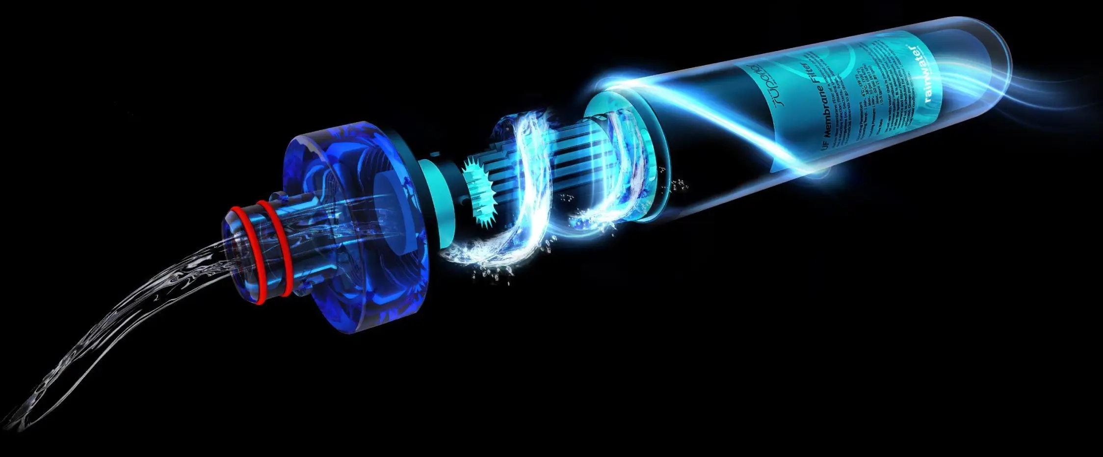 Şebeke suyu, yapılan bağlantıyla önce gözenekleri 5 mikron olan ön filtreye gelir. Bu yüksek teknolojili filtrenin görevi, sudaki kaba kirleri, yani toz, kum, yosun, böcek gibi tortuları 5 mikrona kadar temizlemektir. 5 mikrondan büyük, su içinde asılı partiküllerin ve bakterilerin tutulduğu sediment filtre ile iyice berraklaşan suda, hâlâ bazı mikroorganizmalar, erimiş kimyasallar ve mineraller bulunabilmektedir.