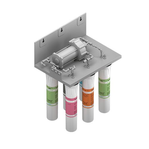 Osmos farklı iyon değişimlerine sahip olan ve aralarında bir yarı geçirgen membran bulunan iki çözeltinin osmotik basınç vasıtasıyla iyon derişimlerinin eşitlenmesi olayıdır. Bu olayı tersine çevirmek için, bir pompa ile osmotik basınçtan daha büyük bir basınç uygulandığında yarı geçirgen olan ve içinde 5 Angostrom boyutunda delikler bulunan membran sadece saf suyu geçirirken bakterileri, pirojenler, organik maddeler, askıda katı maddeler, erimiş tuzlar, nitrit, alüminyum ve ağır metalleri tutar. Benzerlerinden farklı olarak RainWater Pure Plus-Pro sistemleri kolay kurulum ve hızlı filtre değişimi sağlayan benzersiz çeyrek dönüş sistemine sahip KULLAN – AT tipi filtrelerle donatılmıştır. Bu sistem sayesinde aynı filtre kabı tekrar tekrar kullanılmayarak üst seviye hijyen ve filtre güvenliği sağlanır. Tüm filtrasyon ekipmanları ve bağlantı elemanları NSF ve FDA onaylıdır